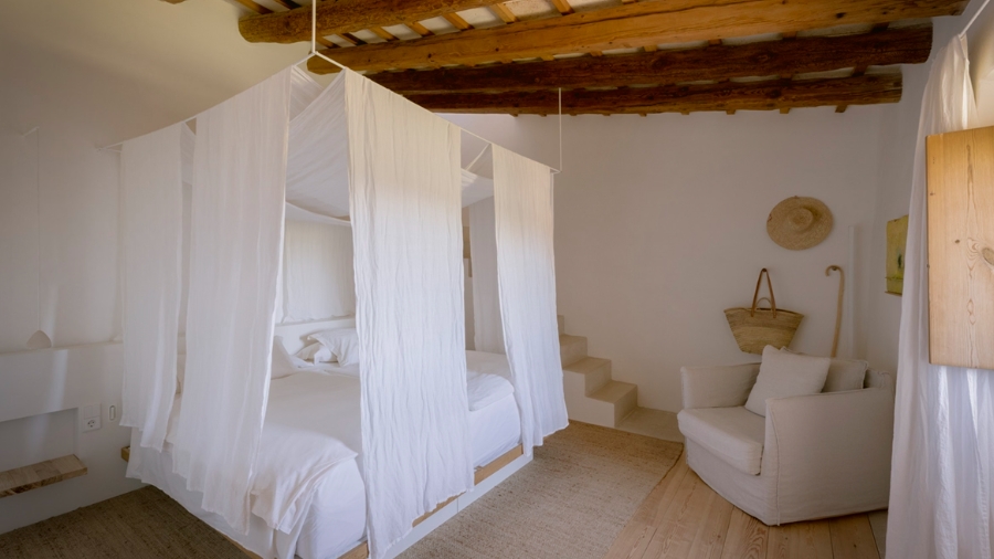 Es Racó d’Artà is a retreat that embodies Mallorca’s rich history and natural beauty, offering guests a sanctuary of tranquillity and wellbeing. Built on the site of a former Berber settlement, the estate has been home to a farm since the 13th century, with centuries of heritage woven into its fabric. Today, this legacy is reflected in the property’s design, which combines traditional elements with contemporary simplicity. The main building houses eight elegant rooms, some with private terraces, while cottages and villas provide additional privacy, with several featuring their own pools. Each space is light-filled and serene, decorated in neutral tones and adorned with artworks by local artists, creating an atmosphere of calm and reflection. Terraces open onto sweeping views and starry skies, while swimming pools blend seamlessly into the landscape, reinforcing the retreat’s harmony with nature.