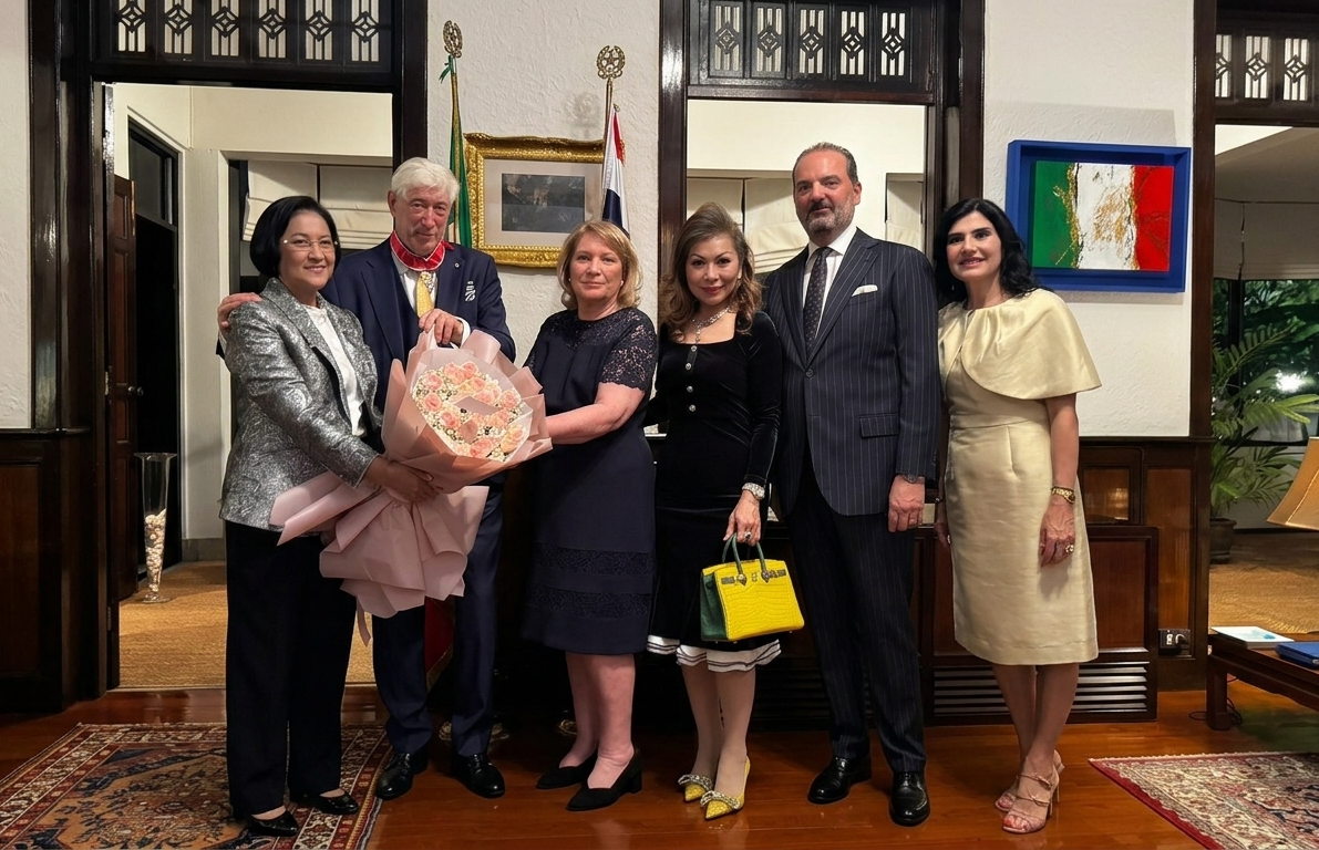 H.E. Mr. Paolo Dionisi (second from right), Ambassador of Italy to Thailand, presented the decoration of Commander of the Order of the Star of Italy (‘Commendatore’) to founder and driving force behind Café Buongiorno Enzo Peroni (second from left) at an exclusive dinner staged at the Ambassador’s residence recently. One of the highest honours bestowed by the Order of Merit of the Italian Republic, the recognition celebrates Commendatore Enzo Peroni’s longstanding contribution to promoting Italian culinary heritage and culture internationally.