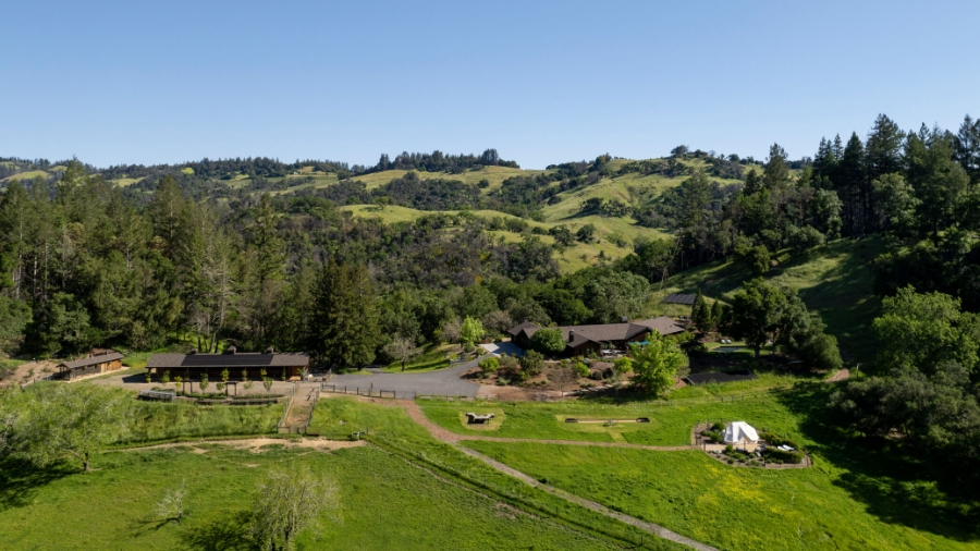 New Tree Ranch is a secluded luxury retreat nestled in the golden hills of Sonoma County, California, spread across 120 acres of lush farmland, rolling pastures, and tranquil Pacific Redwood forest. Dedicated to sustainability and regenerative living, the ranch runs largely on renewable energy from over 200 solar panels, grows more than 200 varieties of organic produce in its biodynamic garden, and practices soil‑building, bee repopulation, and water‑cycle restoration, all part of a broader effort to heal local ecosystems.